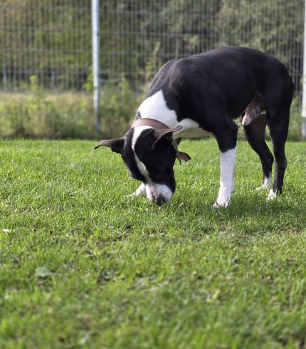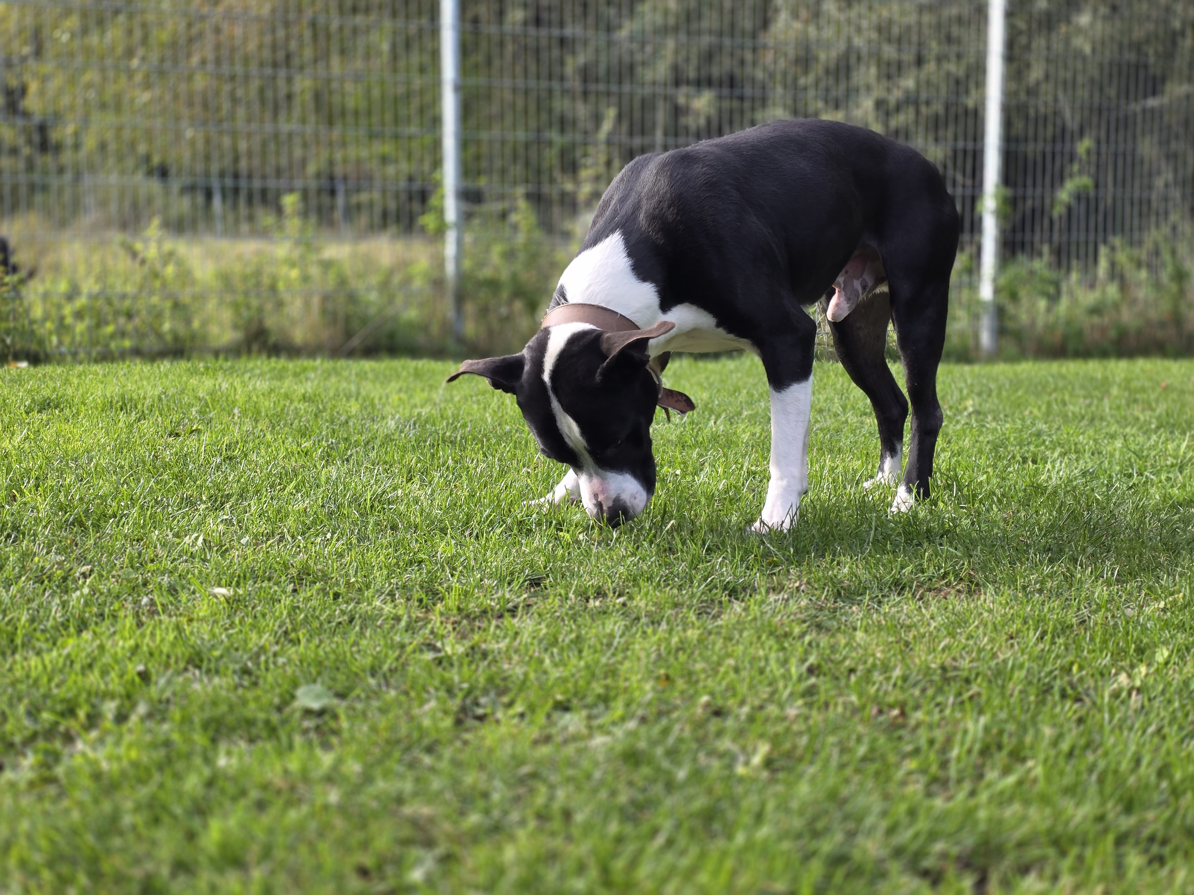 Jasko ist bedingt verträglich mit anderen Hunden und wenn er einen Hundefreund gefunden hat, flitzen sie über die Wiesen, als gäbe es kein Morgen.